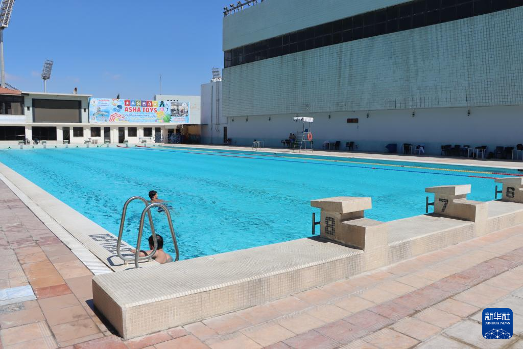 训练馆的西侧是游泳馆,有2个泳池、一个跳水池,可供举办世界级比赛。在游泳馆边上的健身馆,跆拳道教练阿里·巴杜尔正准备为孩子们上课。巴杜尔说,体育城建成时,他还没有出生,但他知道这是中国建设的,“(体育城)当年建设的时候,对当地人来说是非常新鲜的事物”。